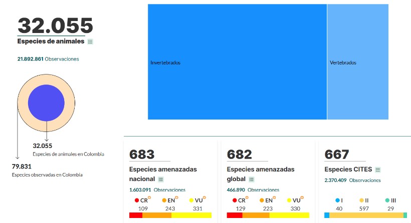En Colombia, se reportan la existencia de 75.831 especies en el territorio nacional (SID, 2023)